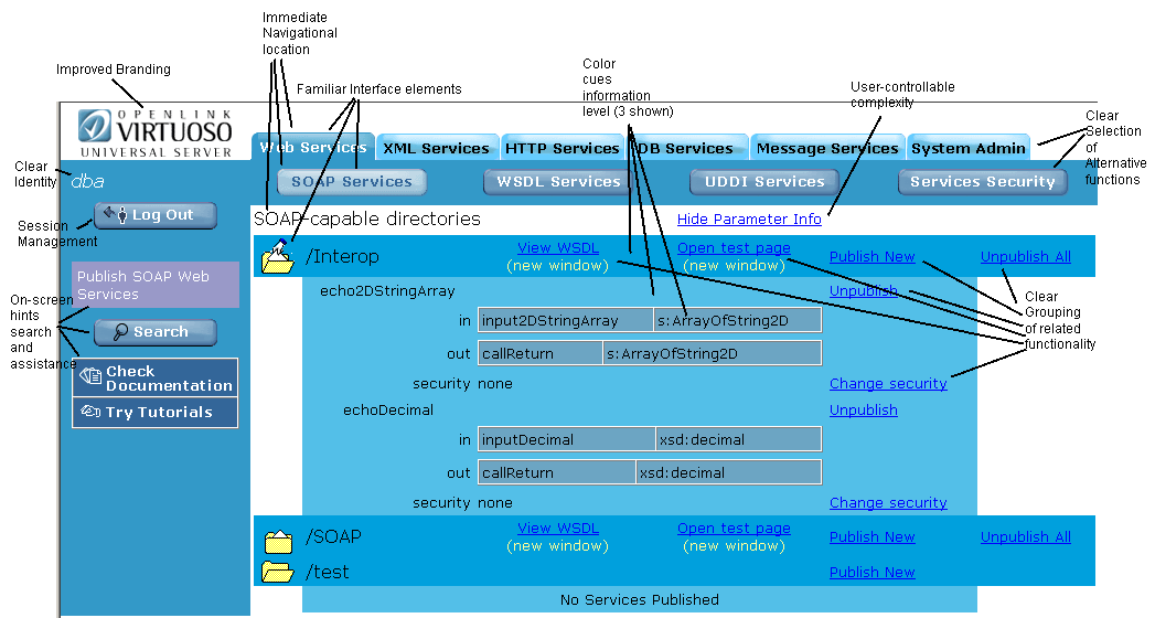 OpenLink Virtuoso is a universal server, including a database, a Web server, a full suite of XML functionality, and Web services capabilities. I designed a unified set of interfaces to each of these functionality groups, as well as messaging and administrative interfaces so that the server could be fully controlled by a remote administrator.
